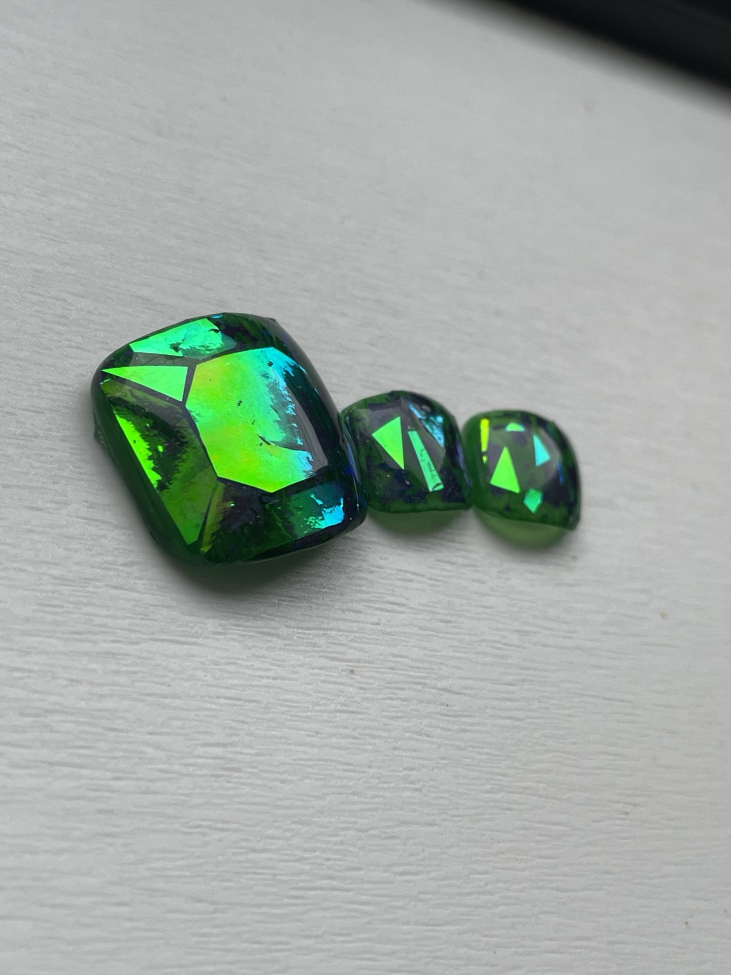 宝石感をしっかり表現しました。色の塗り方からフィルムをたっぷり使用して、エメラルドをしっかり感じて頂けるデザインです。