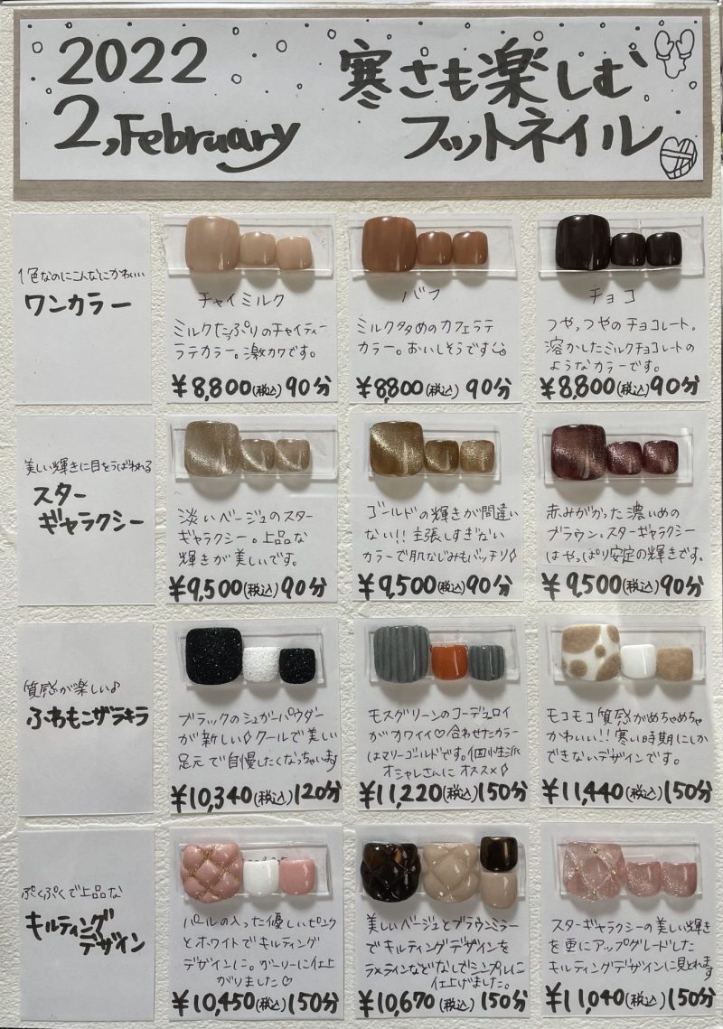 寒くてもフットネイルをするとふと見える足が美しく見えますよ〜♪