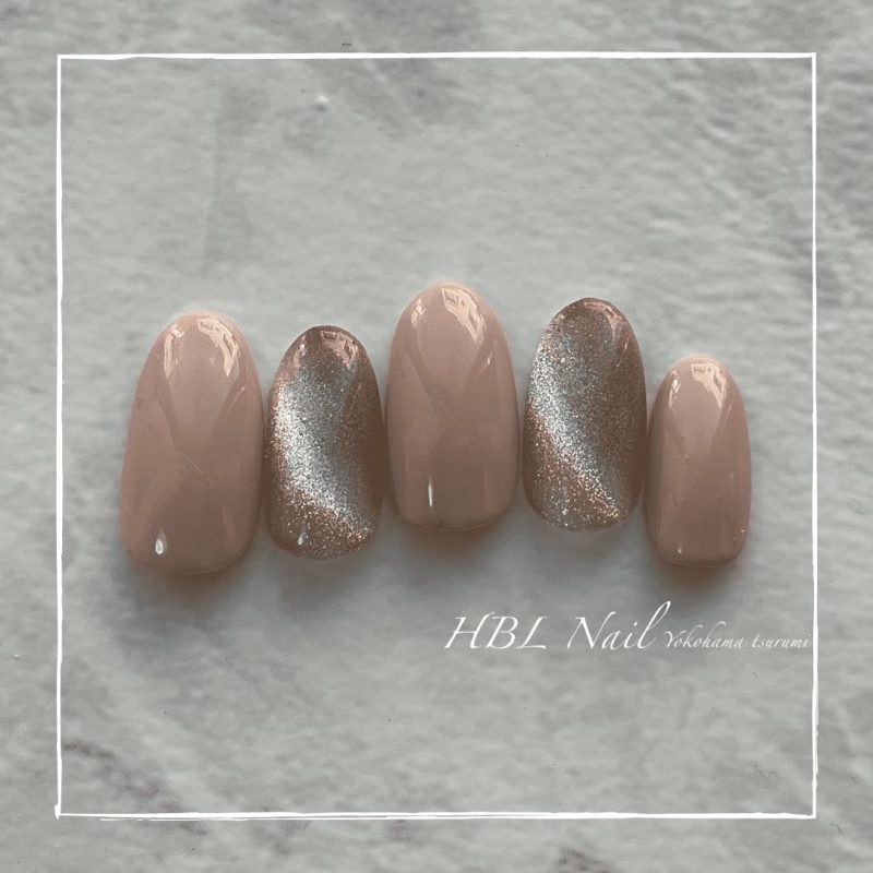 上品なベージュとシャンパンカラーのスターギャラクシーを合わせました。オフィスネイルに最適な美ネイルです。